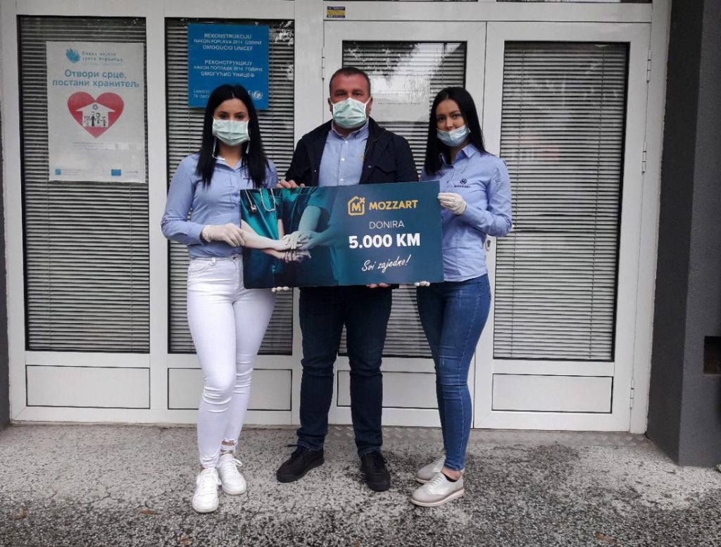 Nakon zdravstvenih ustanova u Banjoj Luci, Prijedoru, Gradišci i Bijeljini, Mozzart je zajedno sa poznatim košarkašem Ognjenom Kuzmićem donirao 10.000 KM Bolnici „Sveti apostol Luka“ u Doboju, s ciljem podrške medicinskom osoblju i upravi bolnice u borbi protiv opasne zaraze.